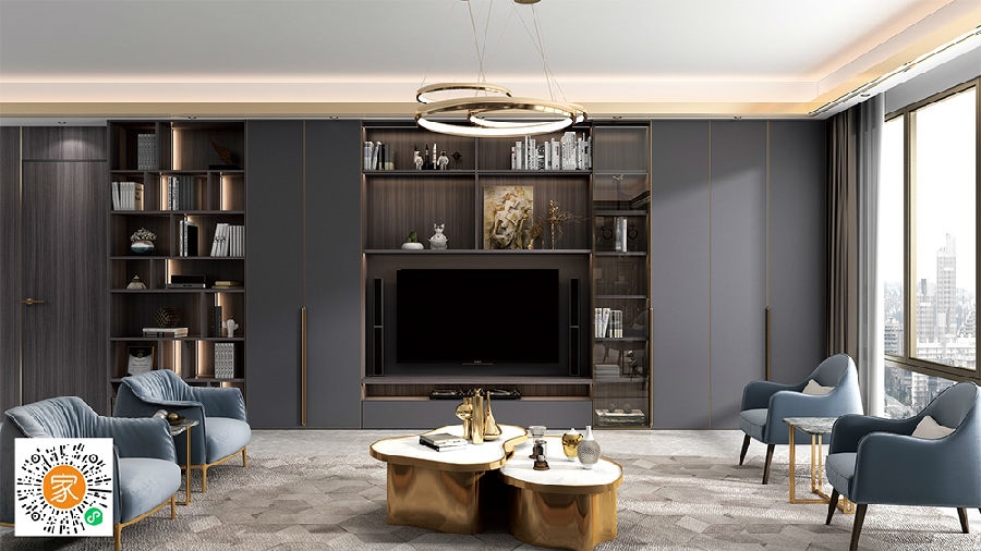 家居中用一点金色,不仅没有想象中的俗气,还会带来整体的轻奢与高级感。特别是在高级灰调的空间,与有设计感的金色搭配,使整个空间都变得大气有层次,轻奢高级感十足。