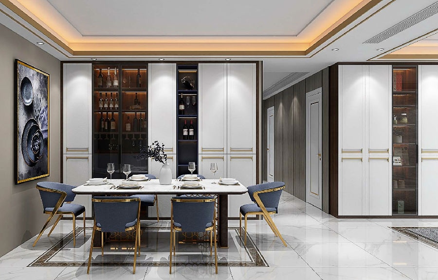 轻奢,也是现代轻奢风格,这种简洁主义的风格渗透了简单+奢华。低调奢华风格注重硬装修手法的简洁,但也并不像一般的简约风格那样随意。在“低调奢华风格”的空间里,看似简洁朴素的外表之下却常常折射出一种隐藏着的贵族气质,这种气质大多数通过家具,壁纸,纺织品,皮毛等软装元素而来。硬装修的简洁更有利于衬托出具有品质的家具和软装产品。